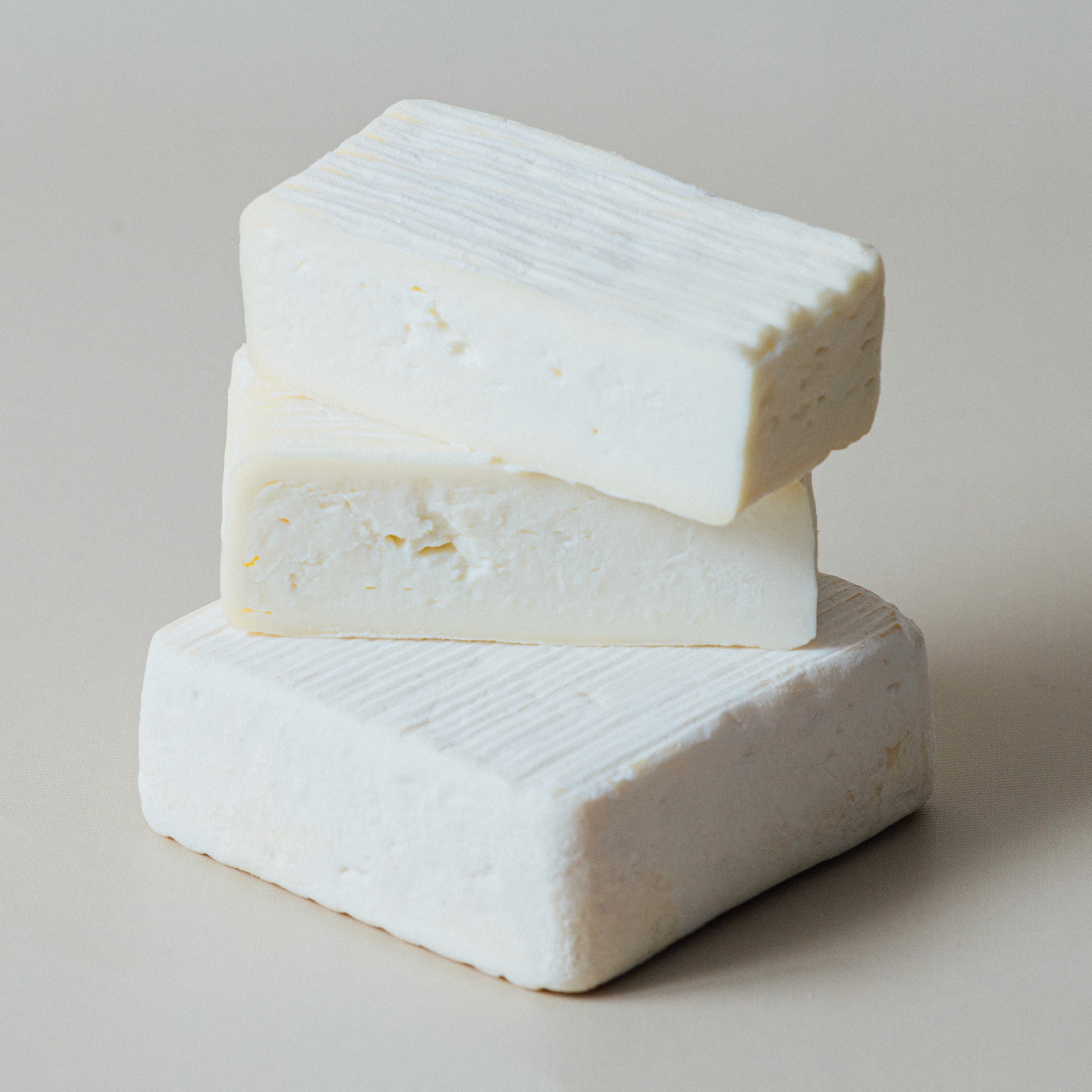 La crosta è sottile, bianca e vellutata, con una fioritura uniforme che può virare all’avorio con il tempo.
